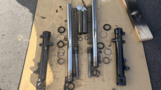 DIYドラッグスター250のフロントフォークオーバーホール 友人から、フロントフォークのオーバーホールの依頼が入ってきました。 今回のお客様?はこちら。ヤマハのドラッグスター250。何やら色々な作業が同時並行で進んでいるようで、僕が見たときには、キャリパーが外れていたり、トップブリッジが外れ... 2026.01.20DIY整備カスタム