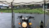イイ感じの回転の感覚は、これまでの練習で掴んでいました。バンクさせてハンドルロックしたときにバイクが起きようとするのを抑えると、内側にバランスが崩れる瞬間があります。その瞬間はなんか知らんけどめっちゃタイヤがグリップしてて、アクセルを開けるとぐりんっって小さく速くターンができるんです。