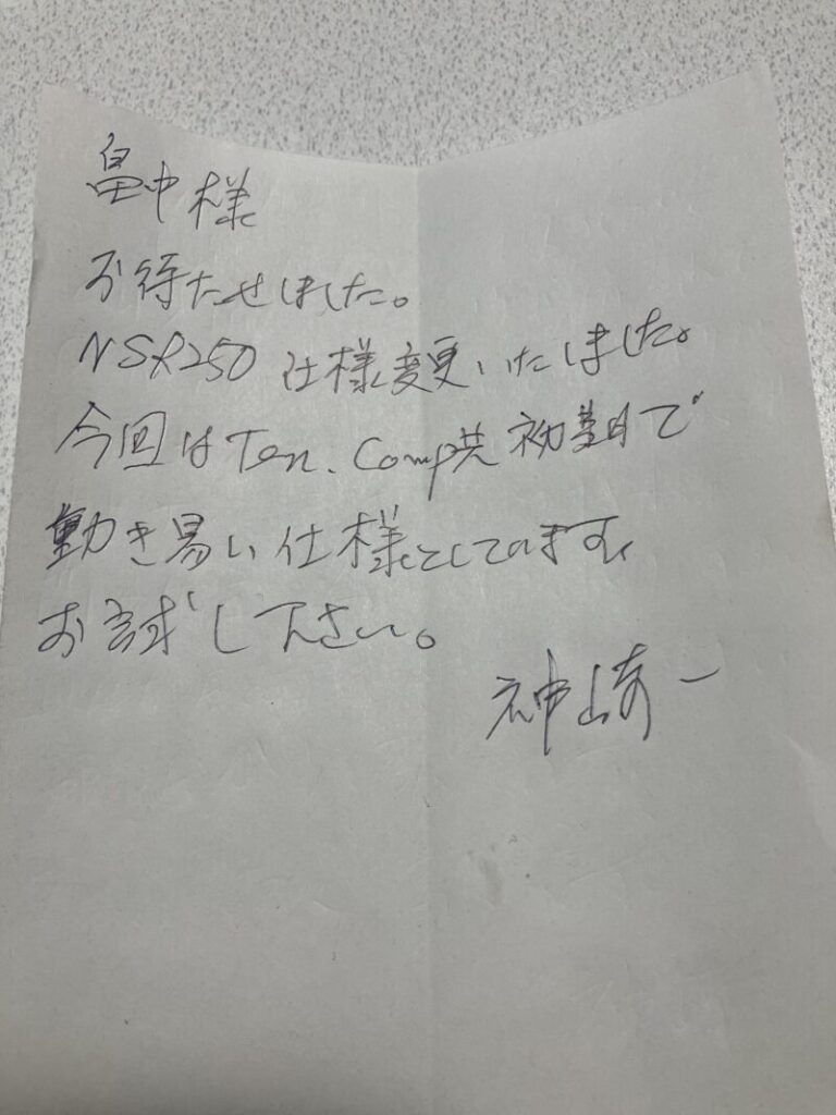 前回の練習会から1カ月ほど日が空き、その間にバイクの整備やら何やらやっていたので、まずはその記録から。
