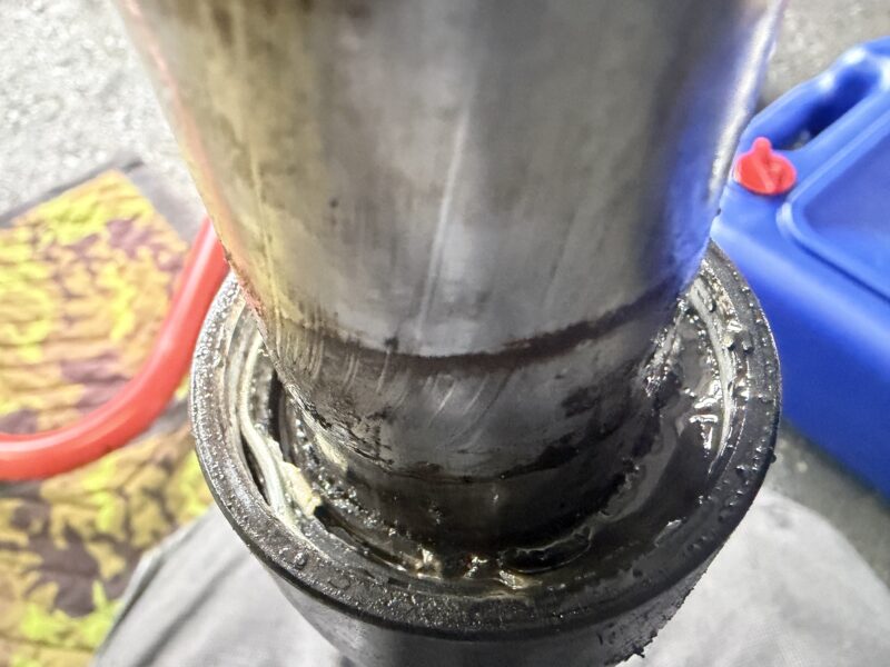 こちらが分解直後のアウターチューブ内。とても汚れていて、目も当てられません。