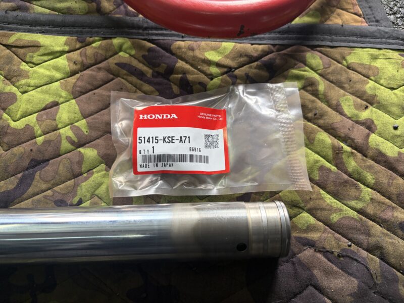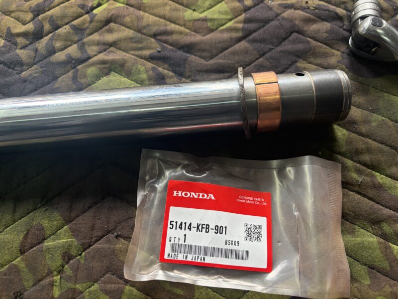 まずは、インナーチューブにブッシュを取り付けます。部品番号51415-KFB-901で注文したら、どうやら部品番号が変更になったようで、下写真のものが届きました。ちゃんと取り付られたので、問題ありません。