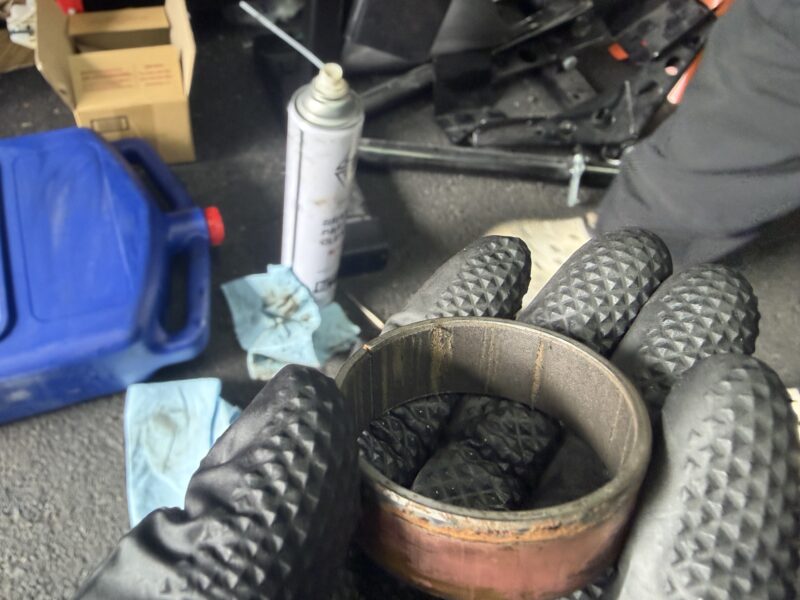 こちらのブッシュは、コーティングが剥げて地肌が見えてしまっています。交換した方がいいと思います。