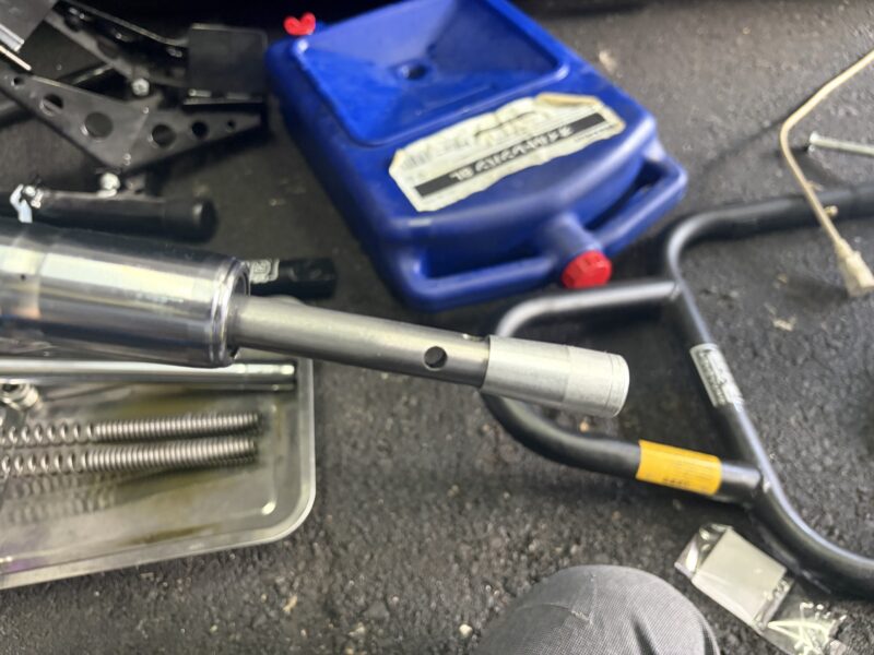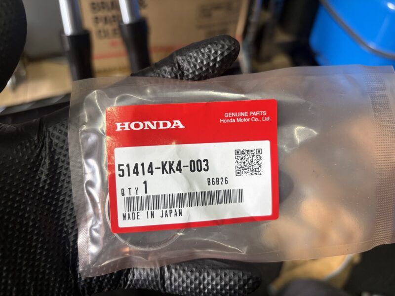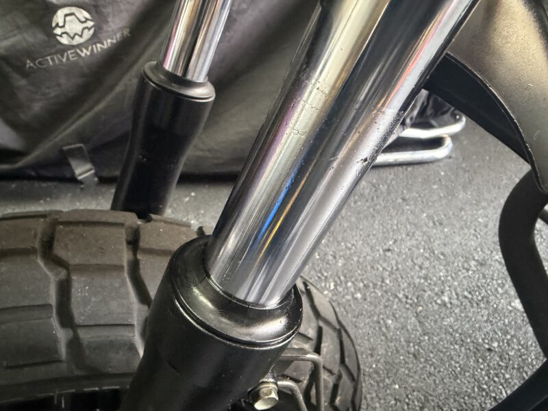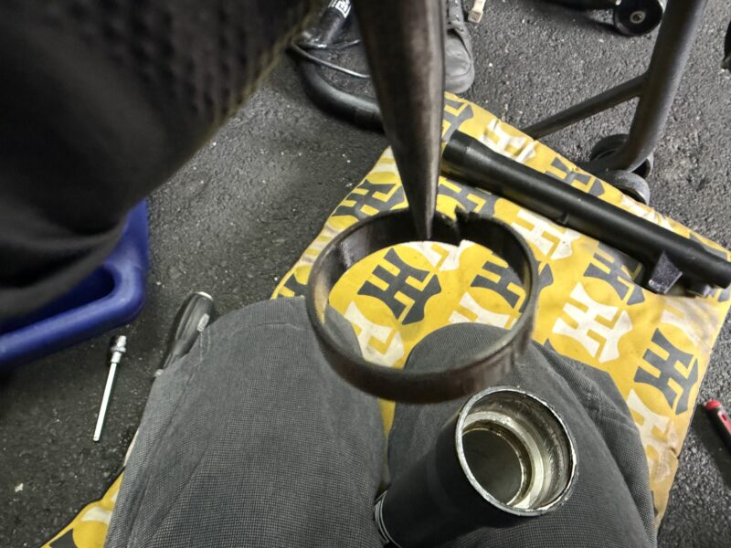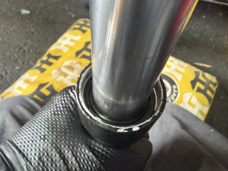 正立フォークと言えど、普段よくさわっている中型車とはちょっと構造が違う部分があって、一部難航した作業もありました。特にスライドメタルの取り外し。きっちりとはまっていて、切れ込み部分を変形させればよいということに気づくまで、1時間ほどかかってしまいました(笑)。