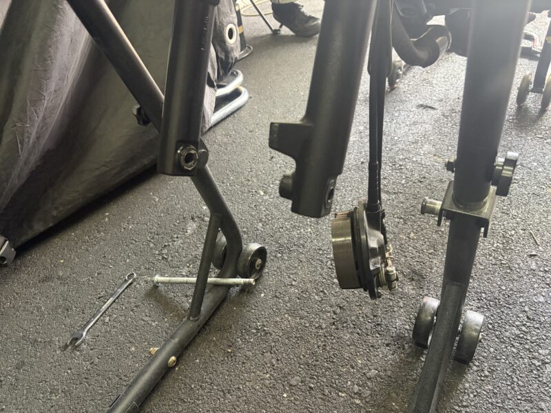 メンテナンススタンドでフロントアップ。