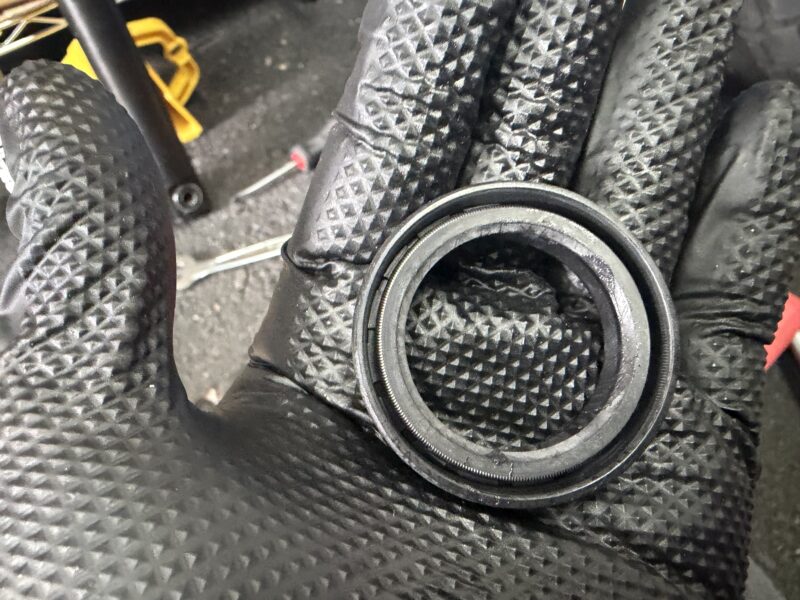 さらに、オイルシールの下のワッシャーを回収し、その下のスライドメタルも外しました。