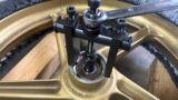 オーバーホールが完了したフロントフォークを、車体に取り付けます。